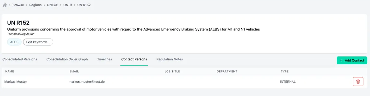 In complex organizations, it’s easy to lose track of who is responsible for which regulation. Certivity allows you to assign a contact person to each piece of regulatory content, making ownership accessible to everyone.